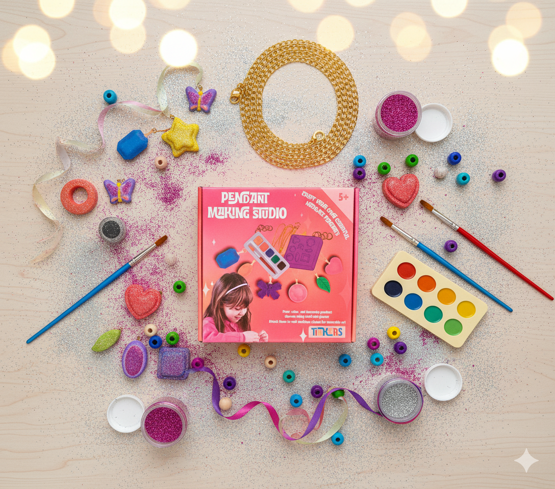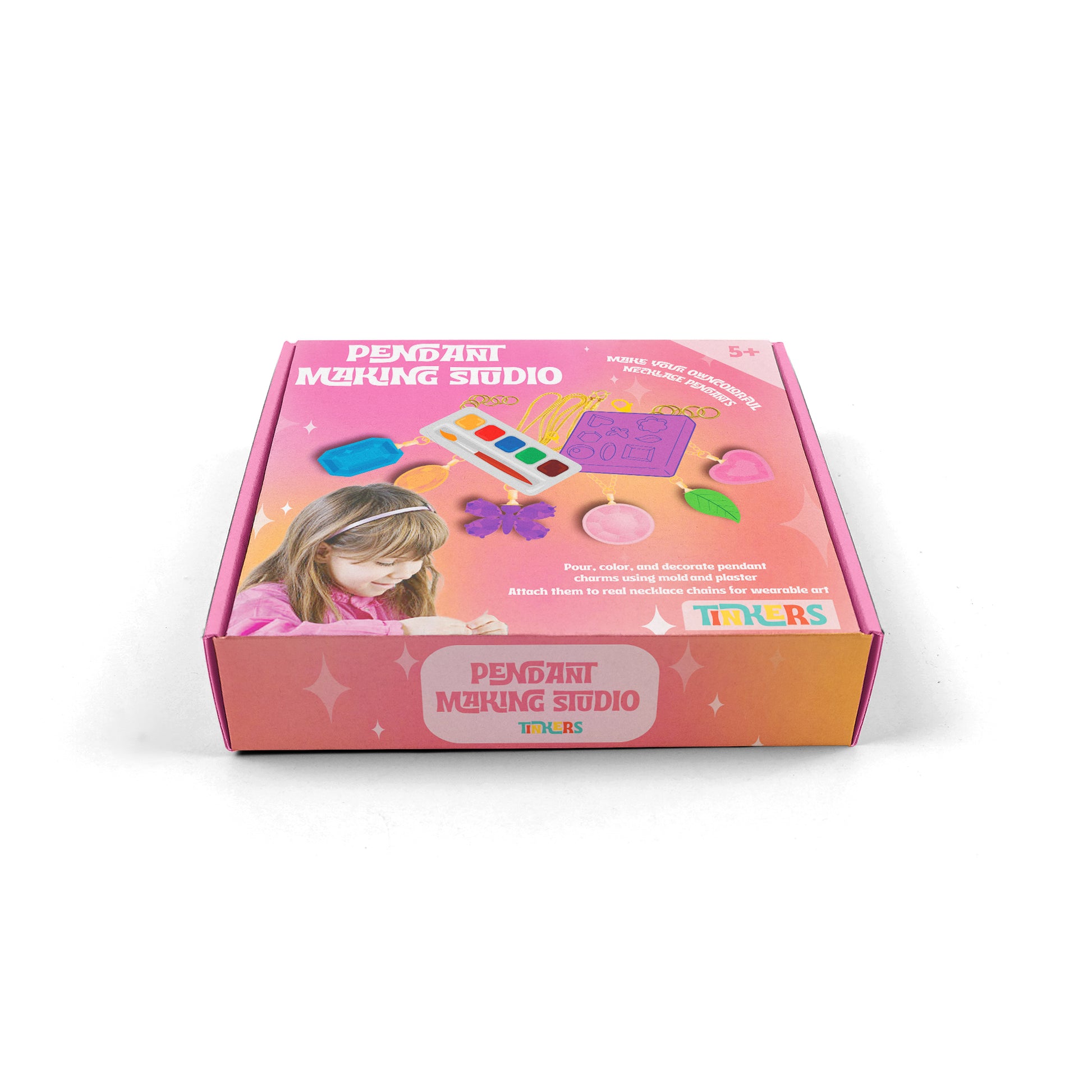 This kit invites children to become mini jewelry designers by making their own wearable art. They’ll mix and pour plaster into molds to form unique pendant shapes, then decorate them using watercolor paints and glitter. Once sealed with varnish and assembled with real metal findings and chains, the result is a custom necklace they can proudly wear or gift. A hands-on blend of crafting, painting, and pride-in-creation.