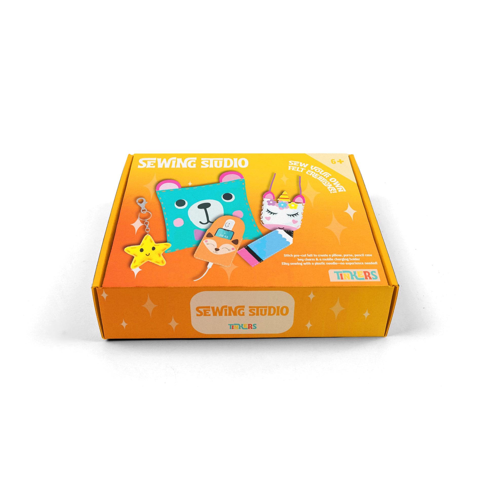 This kit is perfect for beginner crafters, teaching basic sewing skills using soft, pre-cut felt. Kids create multiple mini projects—a pillow, key charm, purse, pencil case, and a mobile charging holder—using a plastic needle and colorful yarn. It builds fine motor skills and confidence through guided success, with plenty of room for personalization.